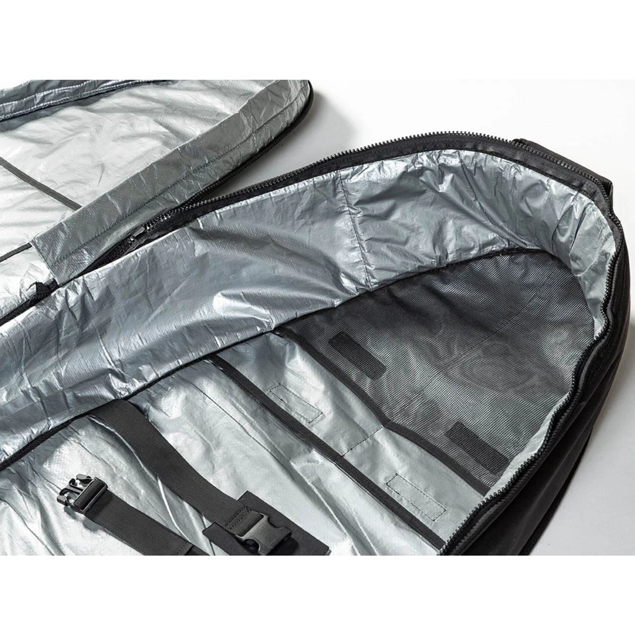 – innenliegende Spanngurte zum fixieren der board im Bag